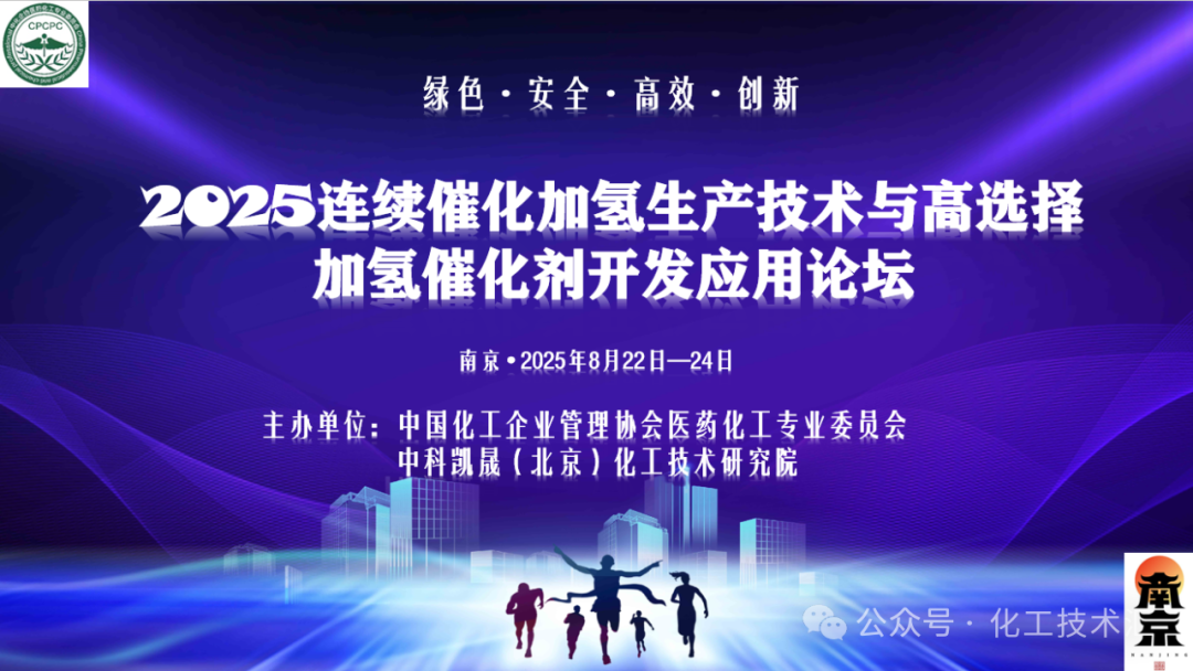 为推动催化加氢生产技术研究与本质安全型催化加氢催化剂及工艺的开发进程,我单位将于2025年8月22日—24日在南京举办“2025连续催化加氢生产技术与高选择性加氢催化剂开发应用论坛”。本次会议将邀请高等院校、科研院所及企业界的资深知名专家,围绕连续催化加氢生产技术研究、加氢催化剂及工艺的开发和选择,设备的选型等方面同与会者进行系统的交流研讨。请有关单位安排人员参加,现将会议相关事宜通知如下: